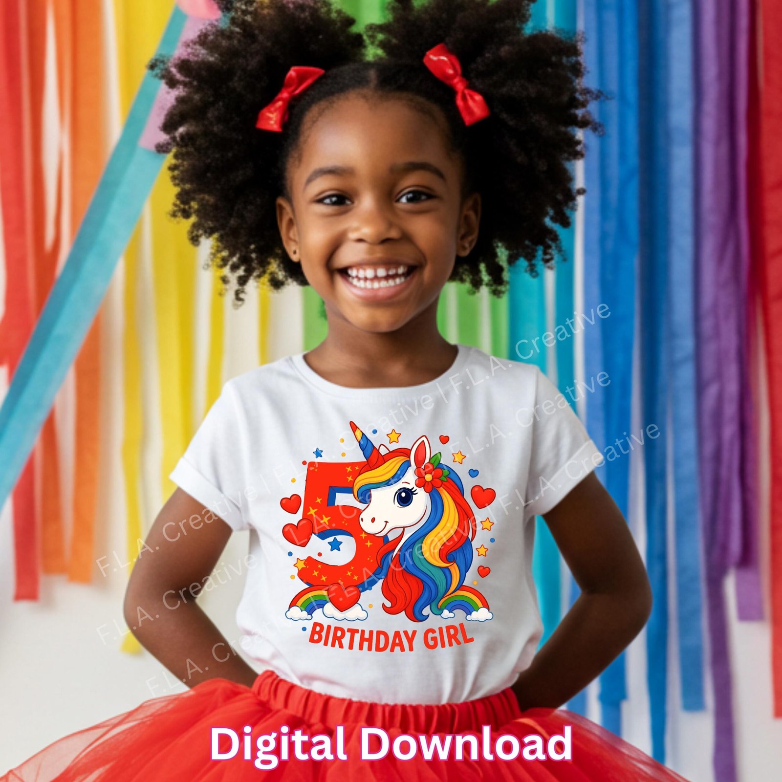 5th Birthday Girl Unicorn PNG – Sublimation Design – Rainbow Birthday Shirt PNG – Digital Download – Unicorn Birthday Clipart