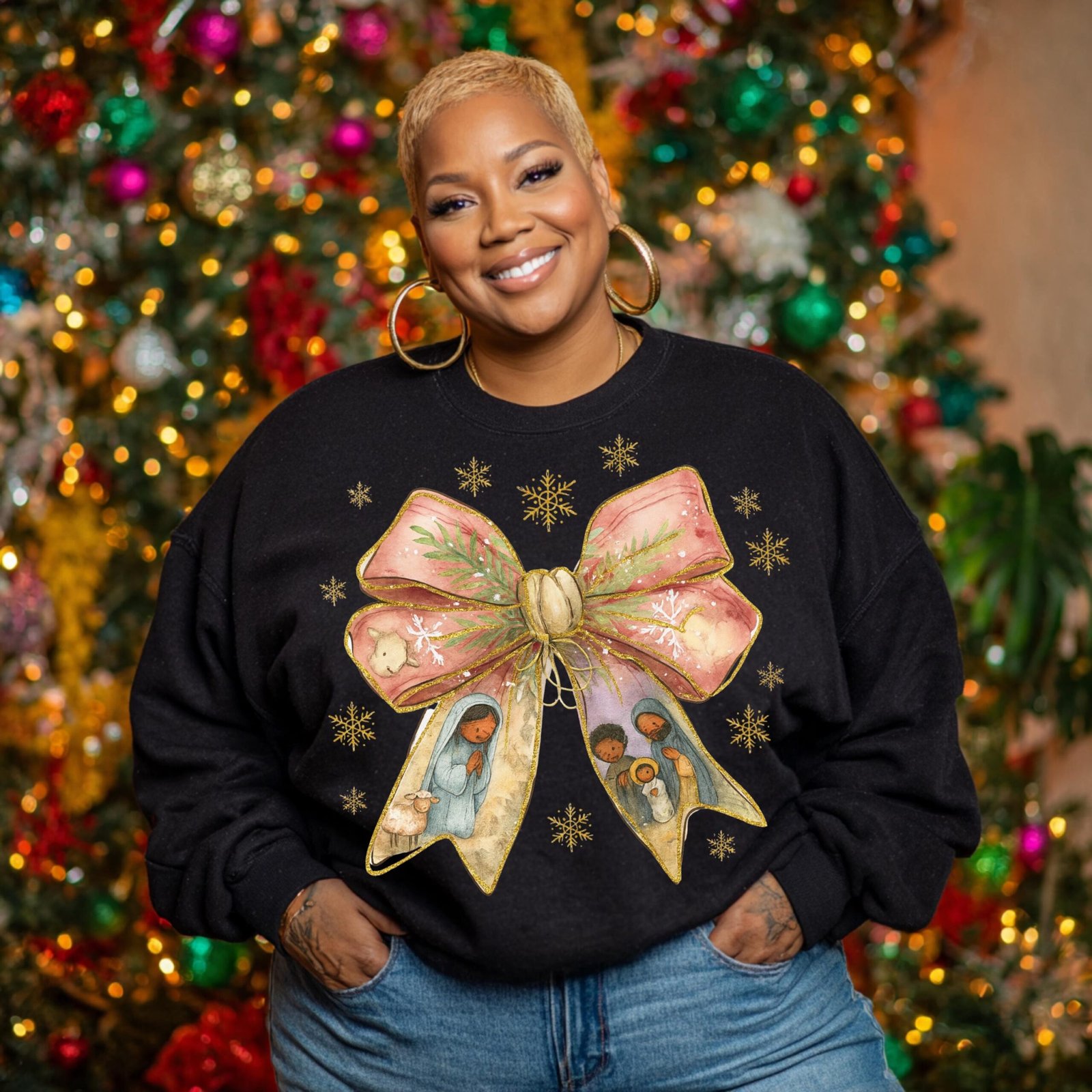 Black Nativity Scene Coquette Bow PNG