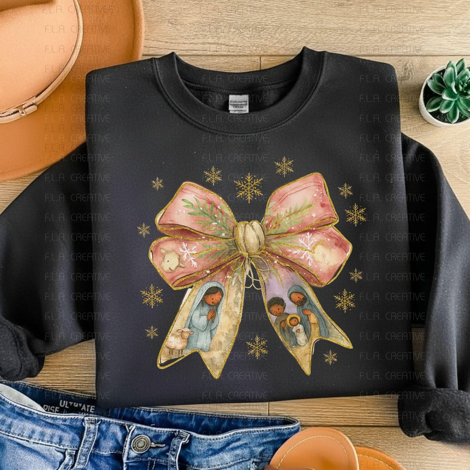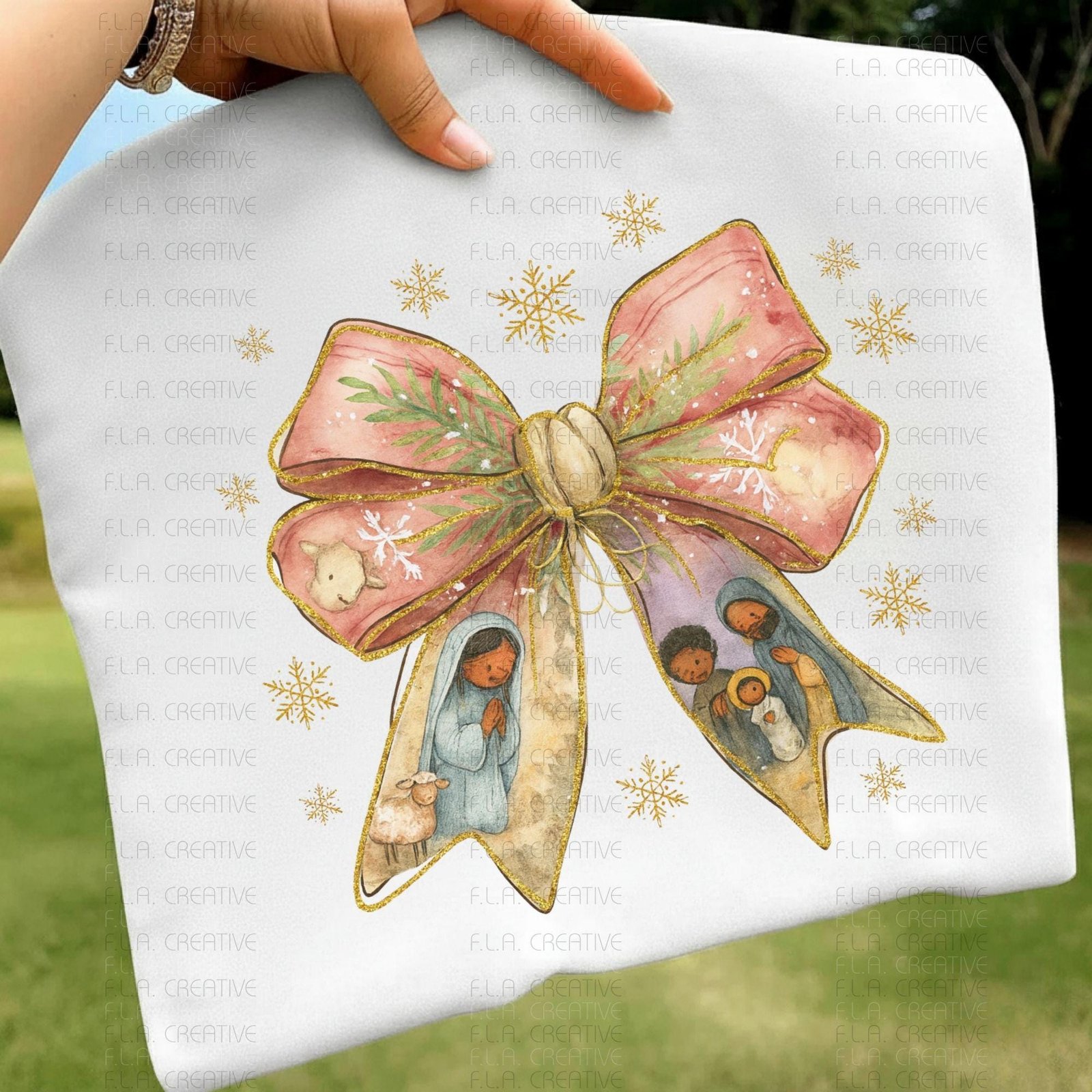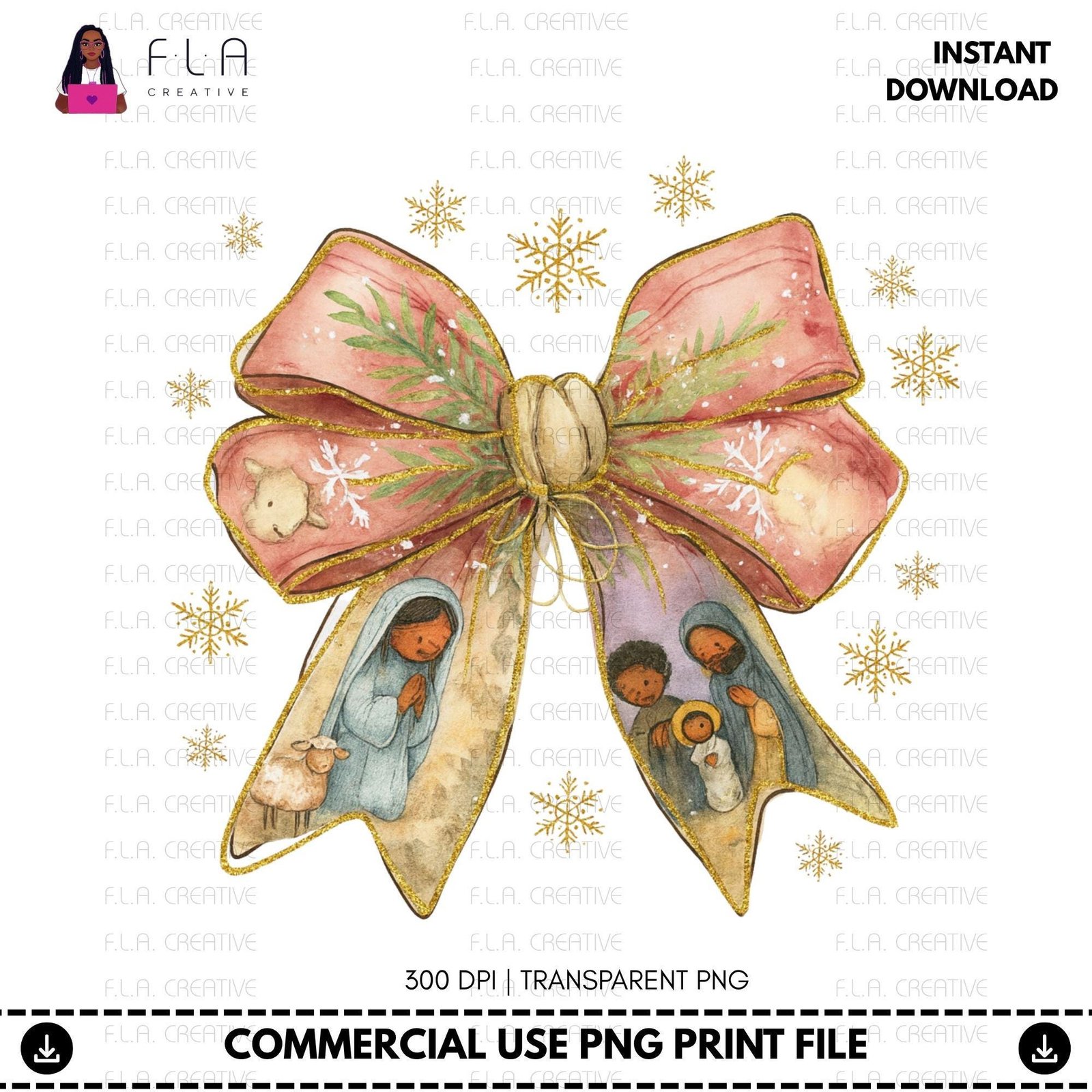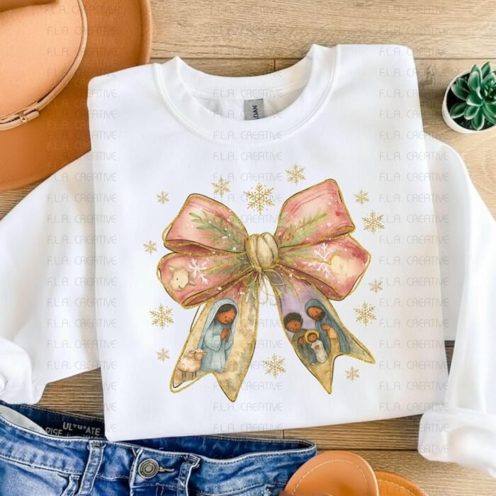 Celebrate the holiday season with a fresh take on tradition using this black nativity scene bow PNG, perfect for adding heartfelt meaning to your creative projects. Designed for sublimation art and DTF print files, this instant download brings a joyful spirit to your festive crafts. Whether you're creating unique Christmas decor or meaningful religious art, this design beautifully captures the essence of the holy family.