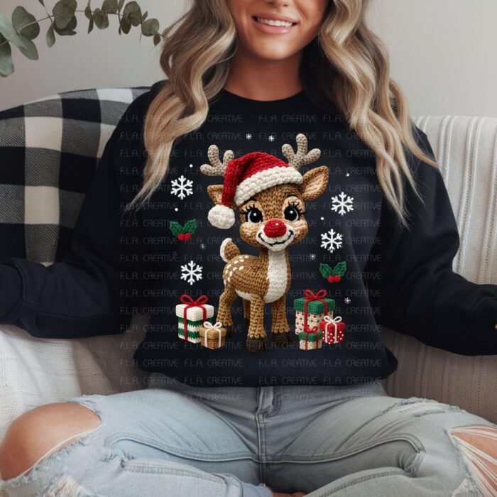 Add handmade charm to your holiday creations with this adorable Christmas Reindeer Crochet PNG! Featuring a cute crochet-style reindeer in a Santa hat surrounded by snowflakes and gifts—perfect for festive apparel, mugs, and décor.