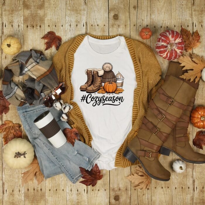 Cozy Season Fall PNG for Sublimation & Print-on-Demand – This high-quality autumn clipart features fall boots, a knit hat, pumpkin, latte, and leaves, capturing the perfect cozy aesthetic. Perfect for pumpkin latte lovers, and fall t-shirt design. Ideal for autumn sublimation, fall projects, and print-on-demand creations. Ideal for T-shirts, mugs, tumblers, tote bags, and fall craft projects.