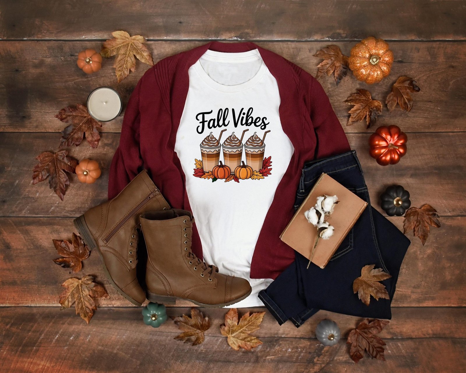 Embrace the cozy season with this adorable “Fall Vibes” Latte PNG! Featuring three creamy pumpkin spice lattes topped with whipped cream and caramel drizzle surrounded by pumpkins and autumn leaves, this design perfectly captures the warmth and charm of fall. Ideal for t-shirts, hoodies, mugs, tumblers, tote bags, and seasonal crafts, this high-resolution sublimation PNG is ready to bring those pumpkin spice dreams to life. Perfect for makers, crafters, and small business owners creating cozy autumn apparel and home decor!