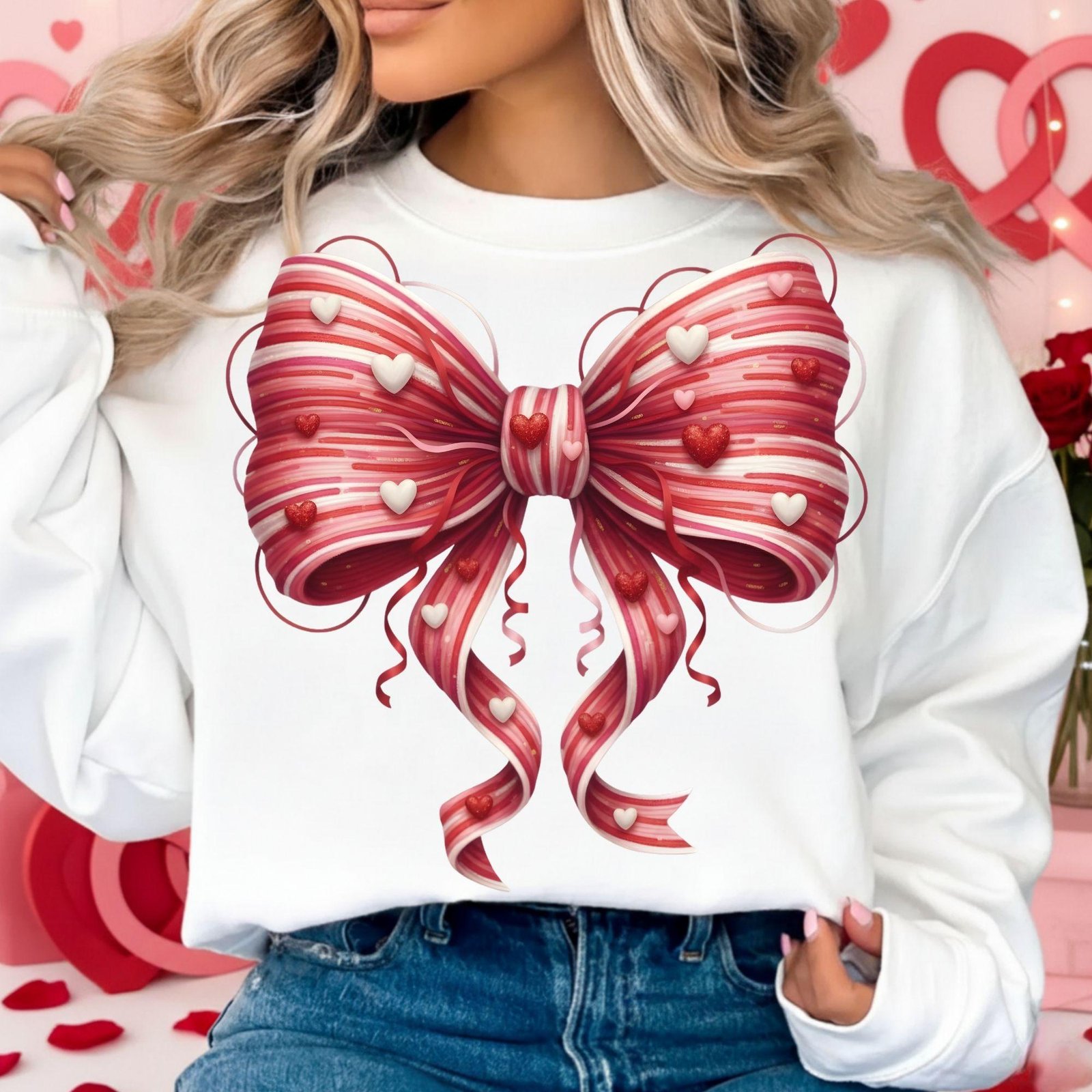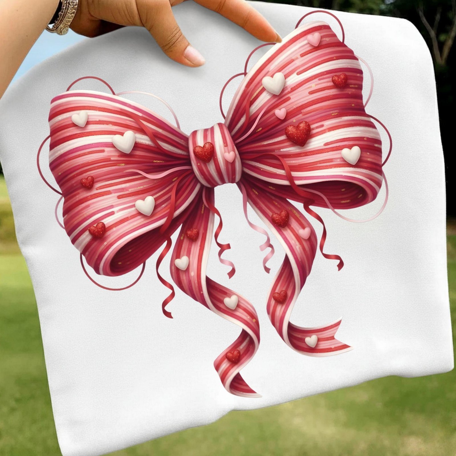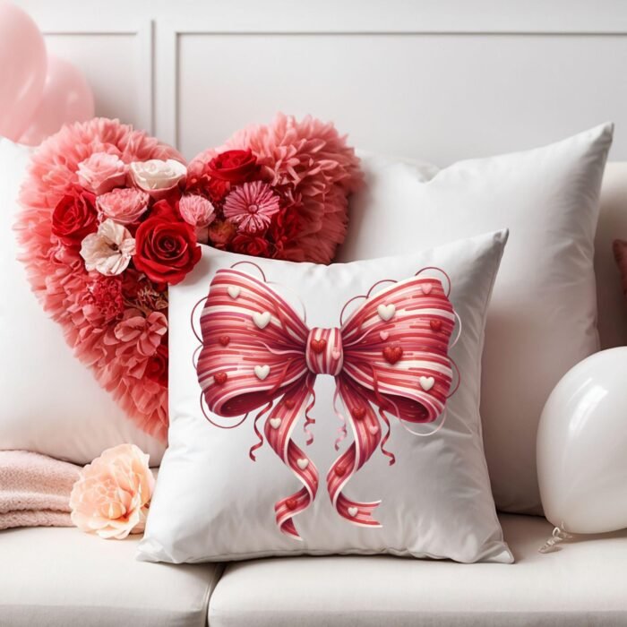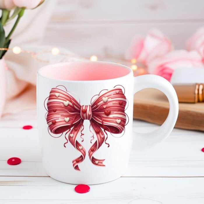 Faux Yarn Valentine Bow PNG, Coquette Heart Bow Clipart, Candy Stripe Pink Red Bow, Sublimation PNG, Cute Girly Valentine Clipart
