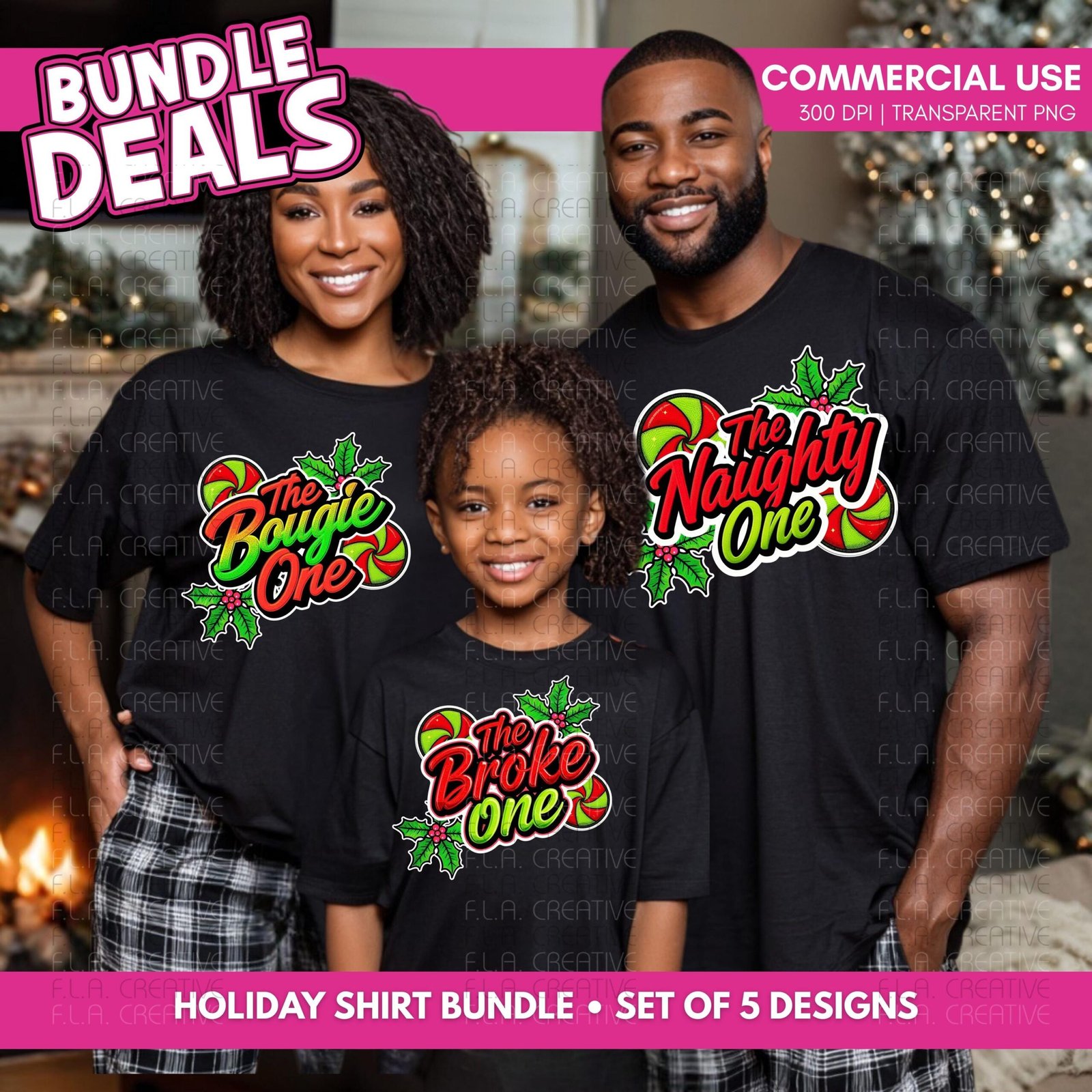 Create viral holiday shirts with this funny Christmas PNG bundle featuring The Naughty One, The Nice One, The Tipsy One, The Bougie One, and The Broke One designs. Perfect for matching family shirts, friend groups, and holiday parties. Each file is a high-resolution 300 DPI PNG with a transparent background, ready for sublimation, DTF printing, and heat transfers. Commercial use is included for physical products, making this bundle ideal for POD sellers and small shops.