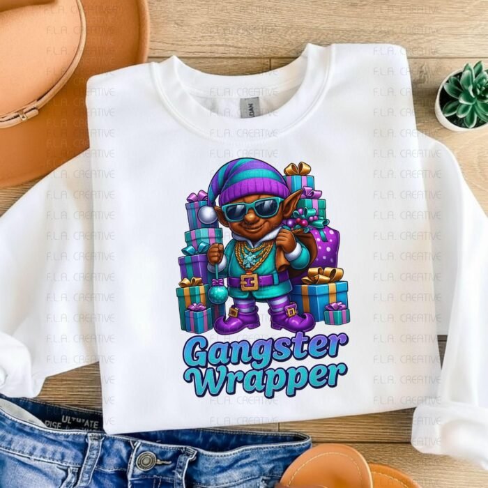 Celebrate the season with a fresh twist on festive fun featuring our Christmas elf PNG, infused with bold hip hop flair and holiday humor. This gangsta wrapper design brings a unique vibe to your Christmas hip hop collection, perfect for adding personality to your holiday crafts. Whether you're creating funny holiday tees or Christmas hoodie art, this instant download is made to inspire creativity and smiles.