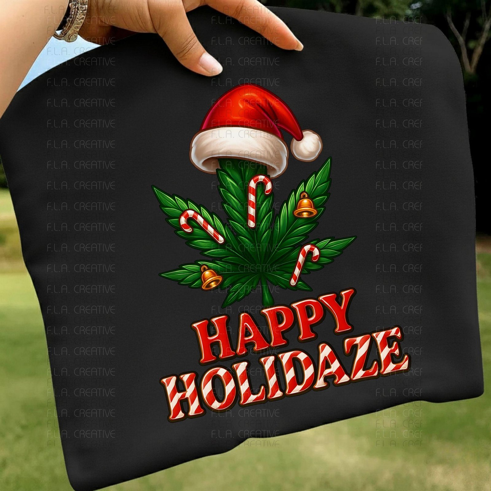 Bring holiday cheer with a twist! This Happy Holidaze PNG features a bold, festive cannabis leaf decorated with ornaments—perfect for fun Christmas shirts, hoodies, mugs, tumblers, DTF prints, sublimation and more.
