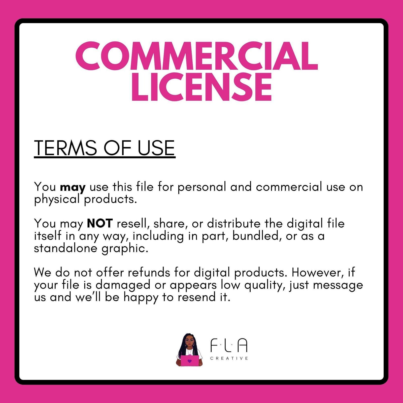 You may NOT resell, share, or distribute the digital file itself in any way.
