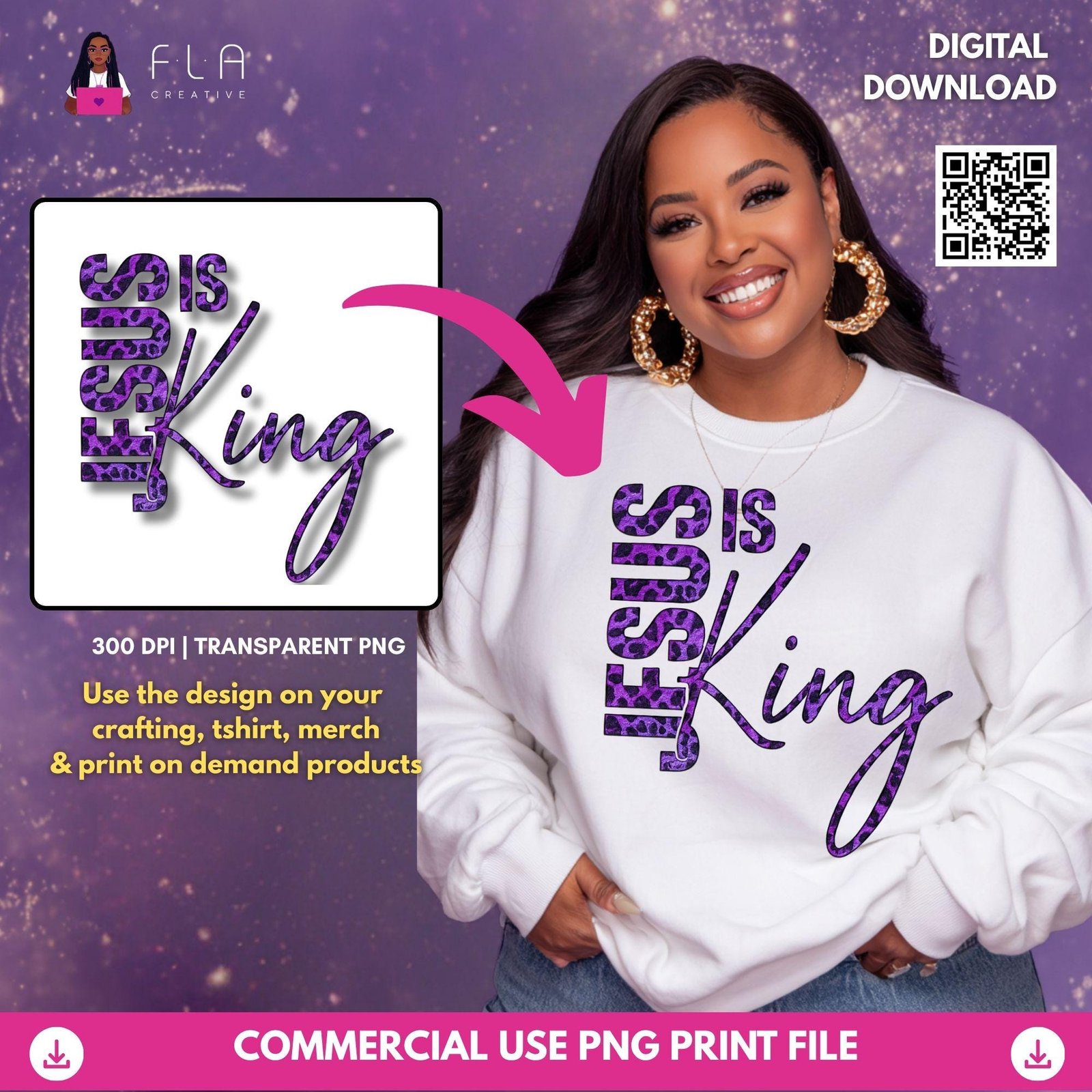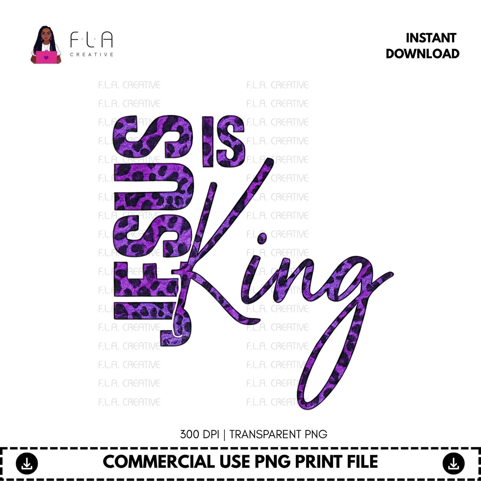 Jesus Is King PNG Download | Purple Leopard Christian Shirt Design | Faith Sublimation | DTF Print | Instant Digital Download