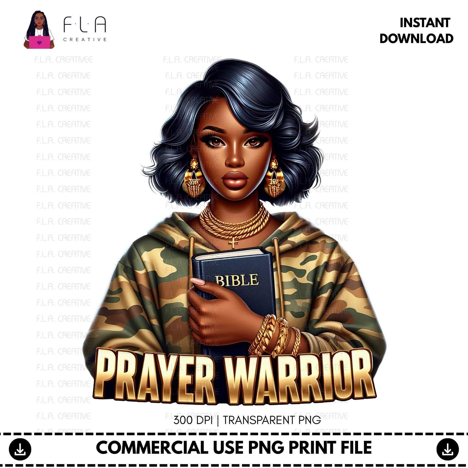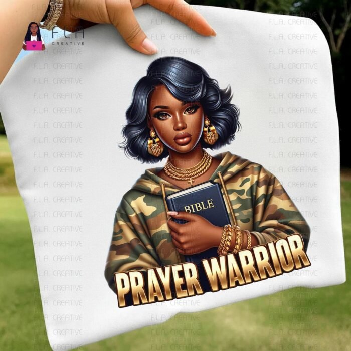 Prayer Warrior PNG, Black Woman Faith Art, Christian Girl PNG, Bible Woman Clipart, Sublimation Shirt Design