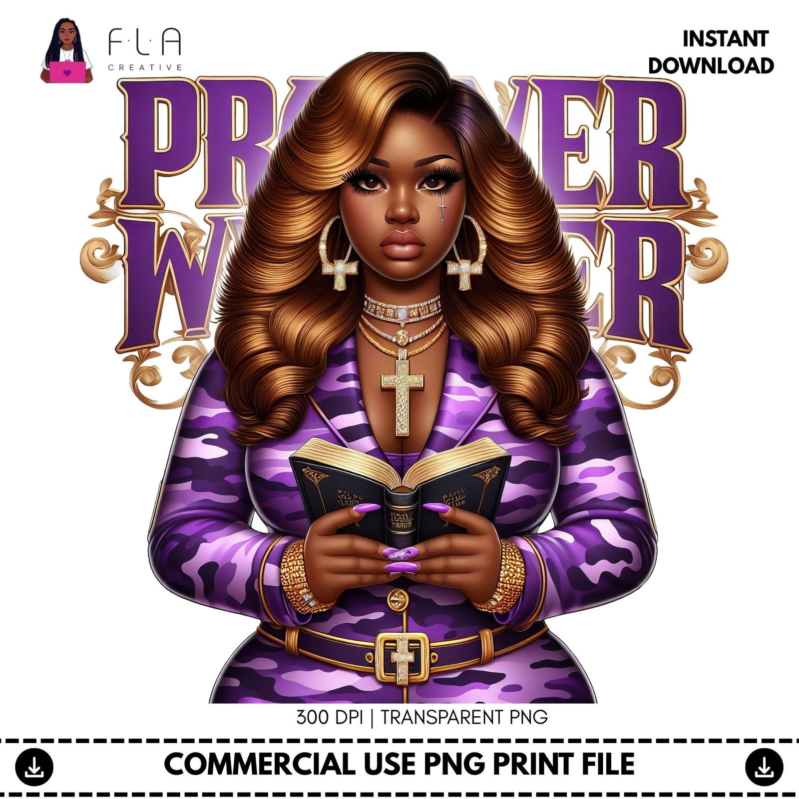Prayer Warrior PNG, Christian Black Woman Clipart, Religious Sublimation Design, Gospel Shirt PNG, Faith Warrior Graphic, DTF Print File