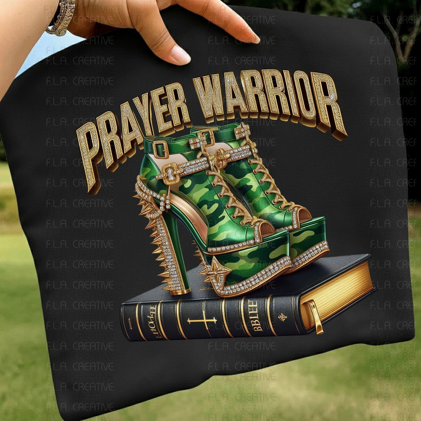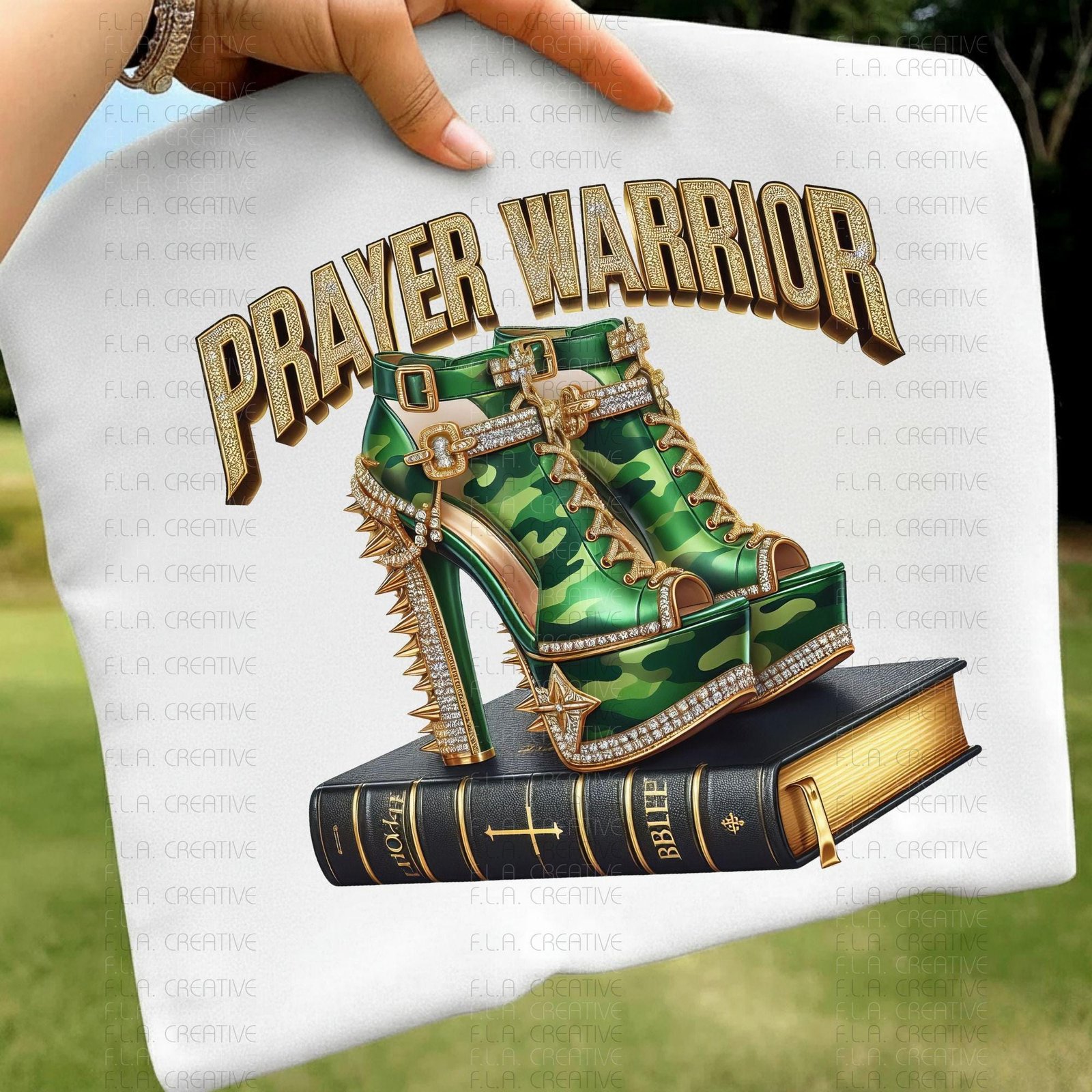 Prayer Warrior PNG, Christian Combat Heels, Faith Statement Art, Bible Clipart, Sublimation DTF Design